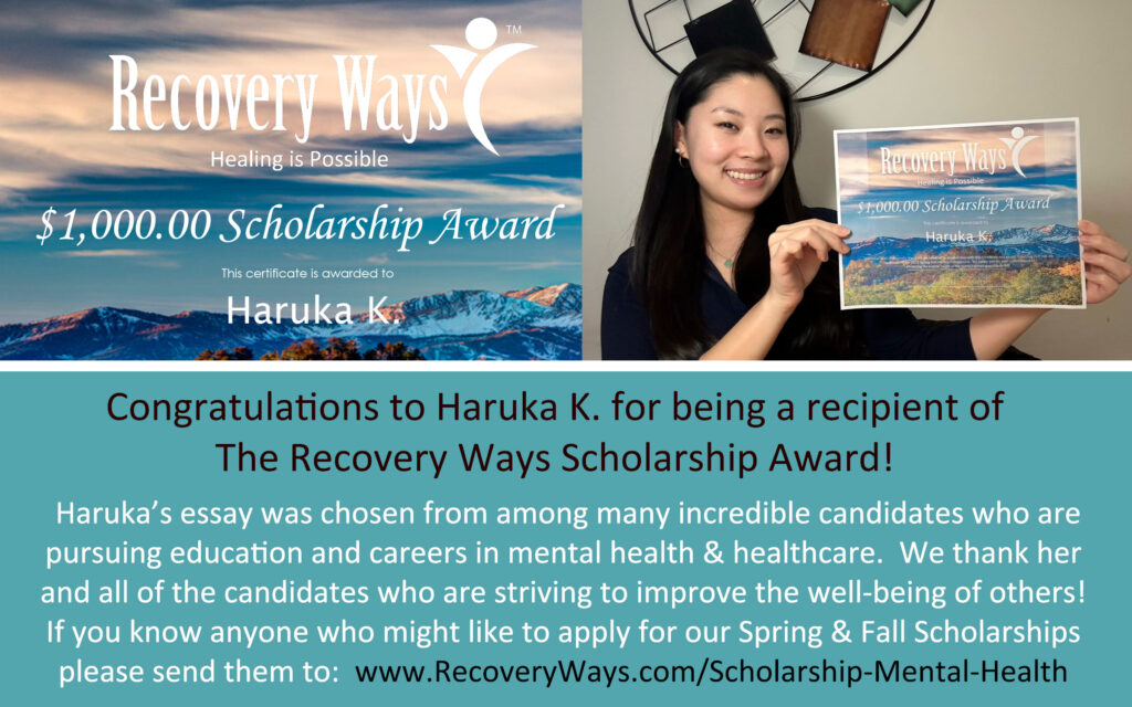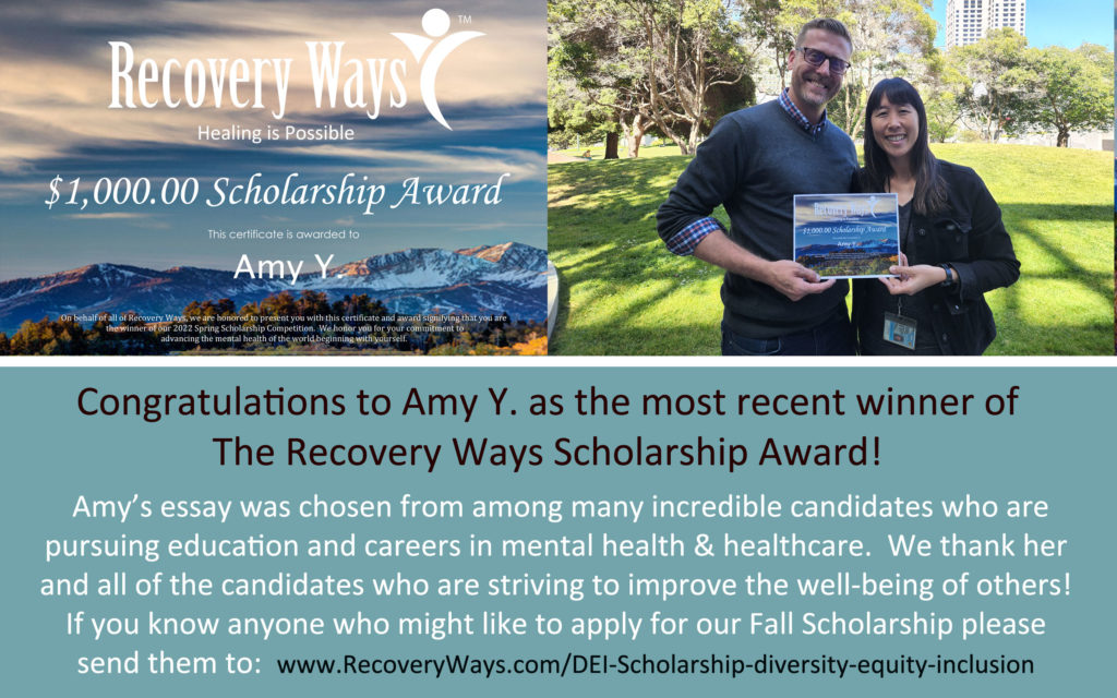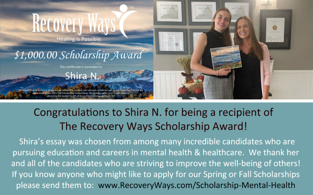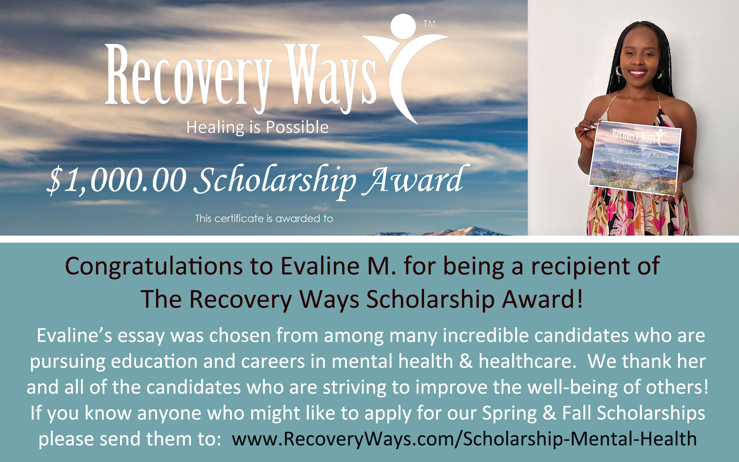 Recovery Ways is offering a scholarship to college students in the amount of $1000. We offer this scholarship in the Fall. We are awarding this scholarship to students enrolled in behavioral health and health care programs at a college or university.